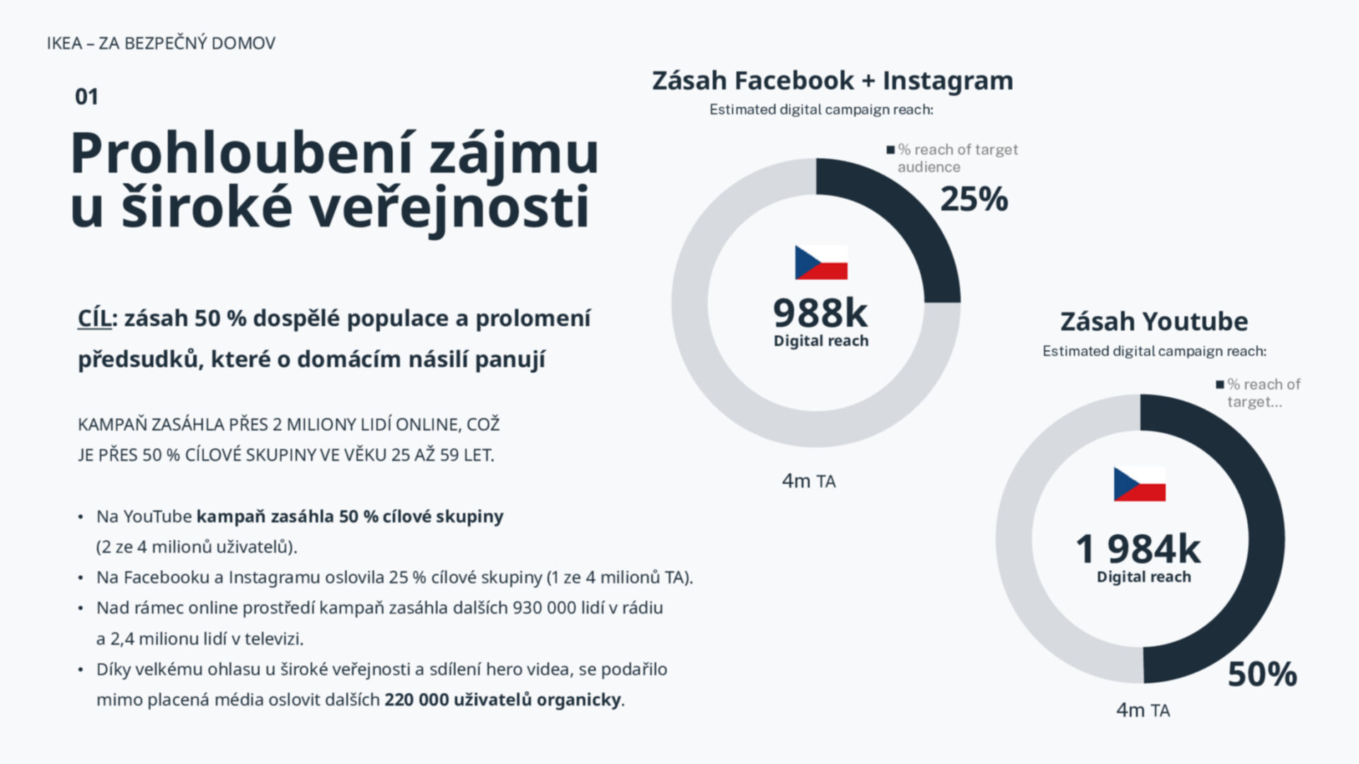 Kampaň zasáhla přes 2 miliony lidí online, což je přes 50 % cílové skupiny ve věku 25 až 59 let.