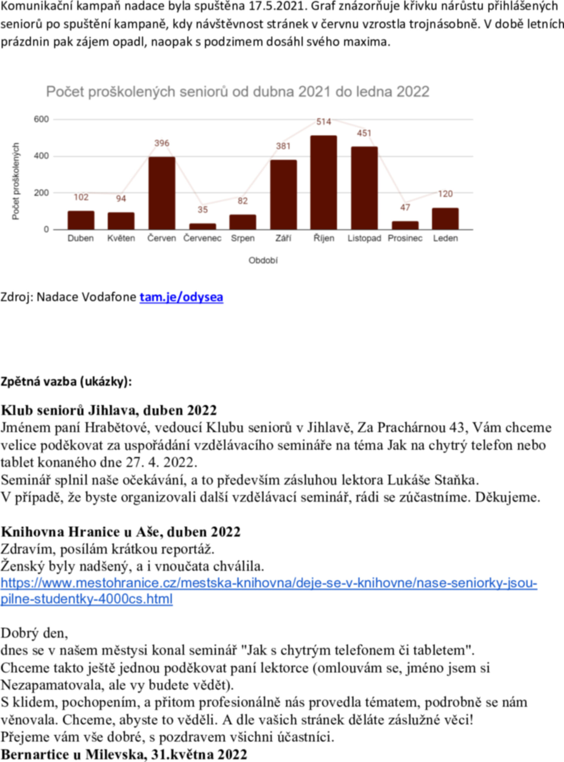 Zdroj: Nadace Vodafone tam.je/odysea (viz. příloha)