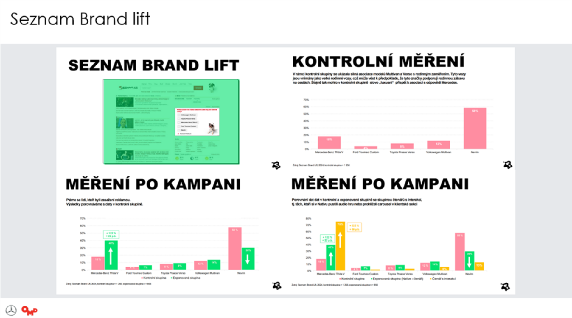 [7] Seznam Brand Studio. (2024, 3. prosince). Mercedes & Seznam Native: Vyhodnocení Seznam Native [PowerPoint snímky]. Interní materiál Mercedes-Benz ČR.