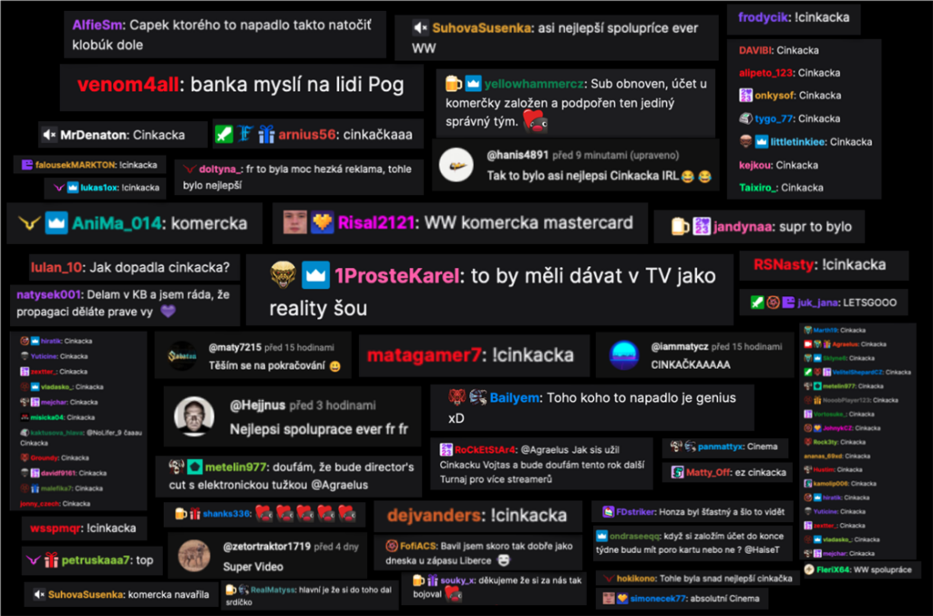 Speciálně Twitch je totiž známý svým unikátním slangem. Naši „umbrellu“ jsme tak nazvali „Cinkačka“, což je termín, kterým hráči běžně označují překvapivě velký výdělek (např. nalezení drahého předmětu ve hře). Tím, že jde o slovo, které streameři i jejich diváci často používají, s každou takovou zmínkou podprahově připomínali i naši aktivitu.
